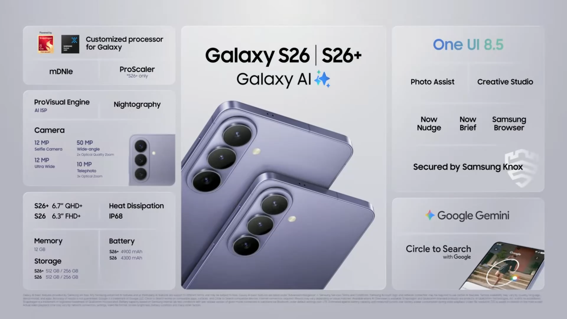 Todas las características del Galaxy S26 y S26+.