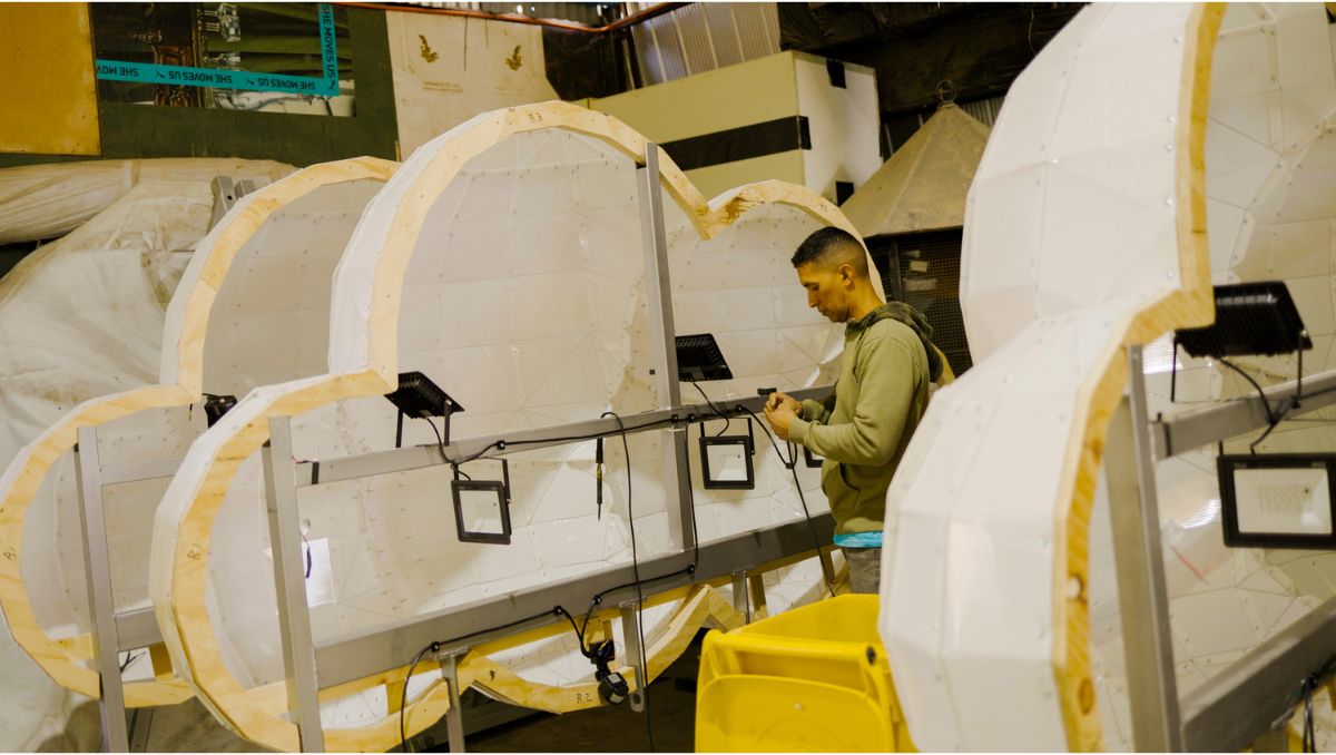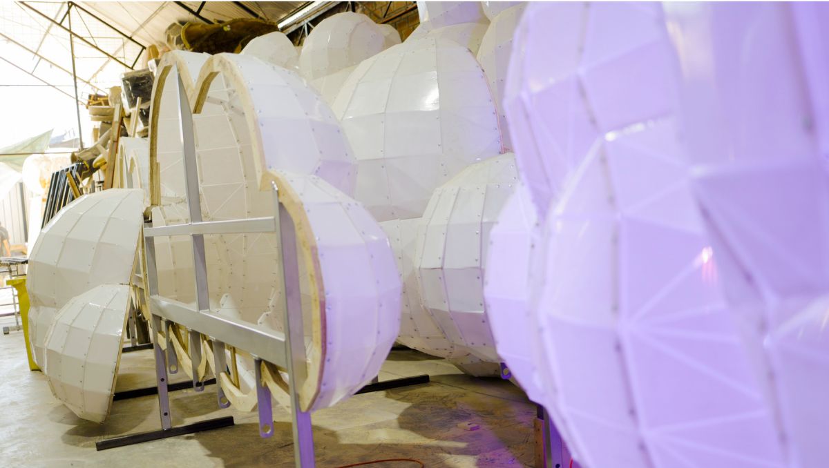 La productora Árbol Color fue la encargada de darle forma a esta instalación, proceso que no estuvo exento de desafíos en un mes que duró el trabajo sin descanso, 24/7, y dedicando unas 15 horas solo a cortar las piezas. Sostuvieron varias reuniones vía zoom con los artistas norteamericanos para coordinar el trabajo, revisar los prototipos y los cambios de materiales pues ni el policarbonato ni los focos de la obra original existían en el mercado en Chile.