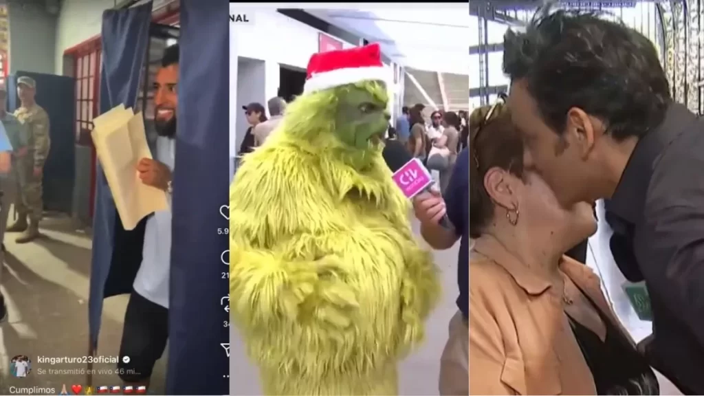 En la transmisión en vivo de Chilevisión, mientras el comunicador Gino Costa se encontraba entrevistado a los votantes en el Estadio Nacional, llegó una persona disfrazada de el icónico personaje, El Grinch.
